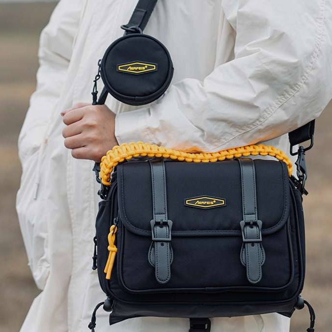 ウエストバックカメラとしての機能性だけでなく、アクセントとなる黄色のストラップがおしゃれな印象を与えてくれます。