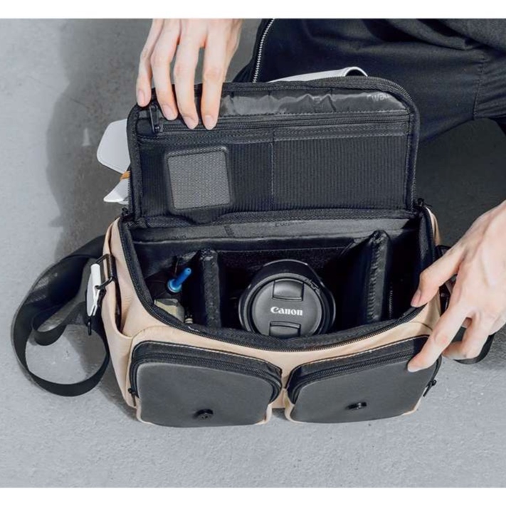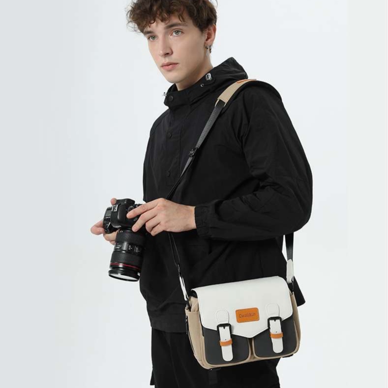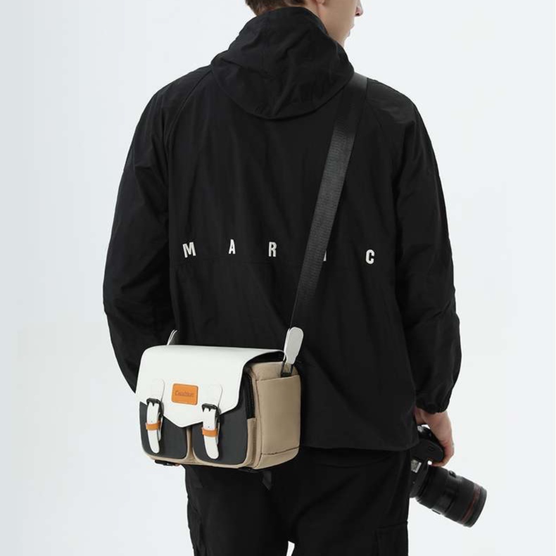 このメッセンジャーバッグは、軽量設計にこだわり、カメラを安全に収納するための理想的なアイテム。豊富な収納スペースにより、レンズやアクセサリーも余裕を持って持ち運べる。機能美を追求したデザインが、スタイリッシュさを保ちながら実用性を高める。撮影の旅のお供に最適な一品。